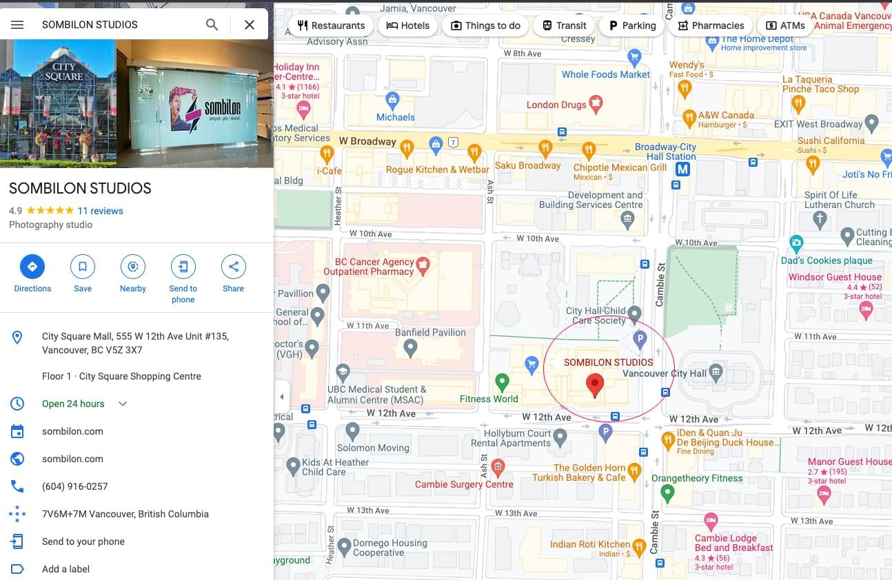 A: Our studio is located in City Square Mall 555 west 12th in Vancouver, 12th and Cambie.